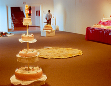 Ruedas de coche, pastillas de freno tornillos, silenciosos, bujes, bujías y todo tipo de piezas de desguaces de coche, son puestas en escenas pintadas y transformadas en pasteles, tartas y todo tipo de dulces de pastelería, dispuestos en escaparate, para su degustación. Un discurso un tanto revulsivo e irónico, hacia esta dictadura consumista que nos acosa.